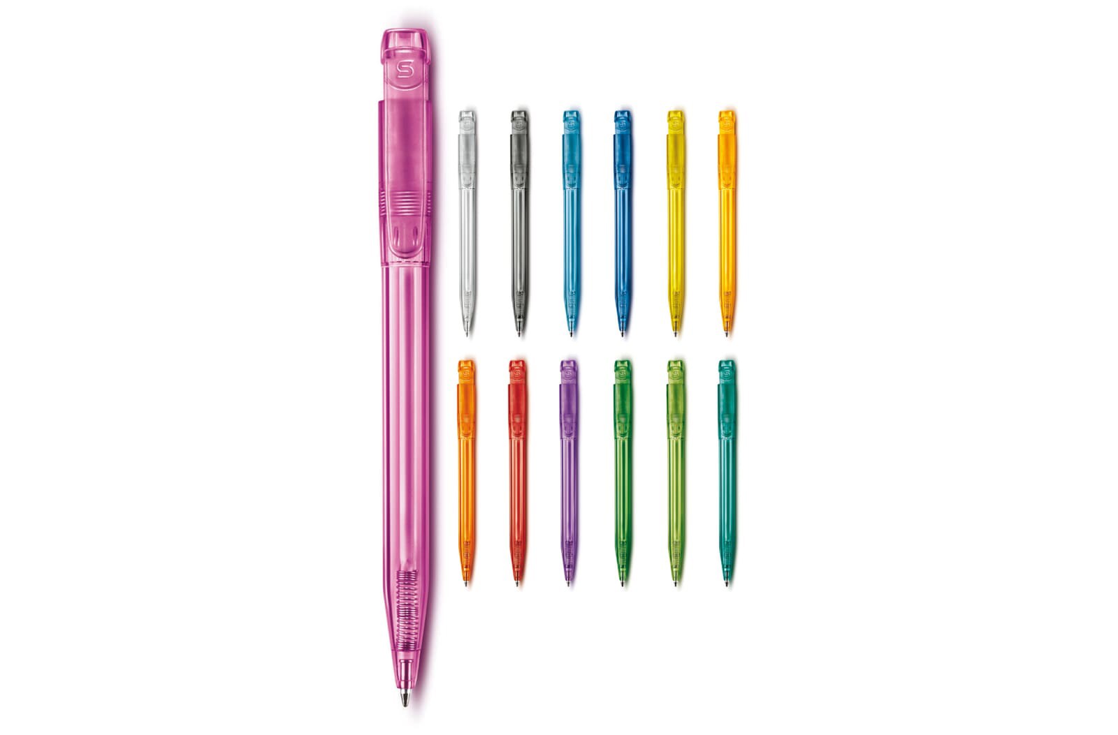 Stylo bille élégant, de couleur blanche avec clip coloré. C'est un bel objet publicitaire avec une grande surface de marquage. Sa cartouche X20 écrit jusqu’à 2.5km, écriture par défaut bleue. Le stylo est fabriqué en Europe en plastique ABS. À partir de 5.000 pièces, vous pouvez choisir vos propres couleurs.