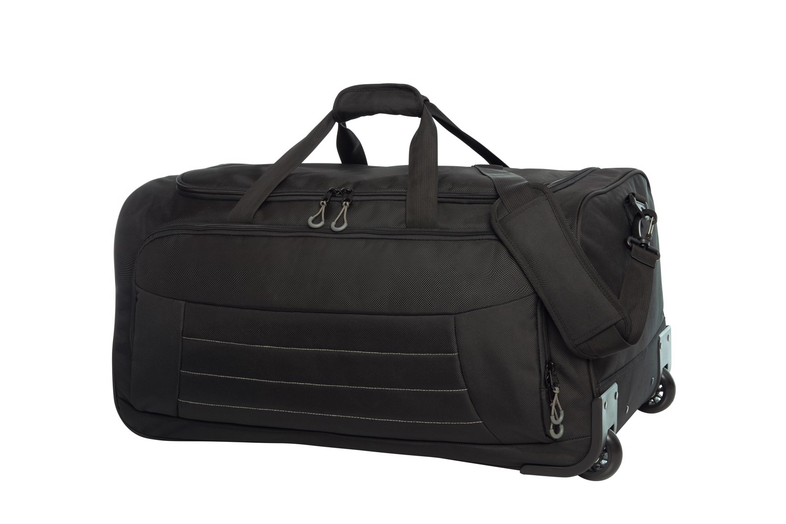 Vaste poche principale zippée; poche avant zippée avec piquage décoratif; poignée télescopique; roulettes; poignée grip; bandoulière amovible réglable rembourrée à l'épaule